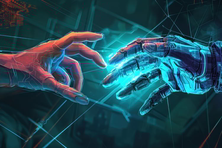 Ideal for start-ups, creative agencies, and digital marketers, this image is perfectly tuned for presentations, web design, or promotional material where conveying the message of strategic development and digital growth is key. Despite its AI-generated origins, the scene is deeply relatable and human, highlighting the connection between technology and personal interaction in achieving professional success. It's a vibrant, yet not overly assertive image that subtly encourages the viewer to engage with the content and embrace the digital future.