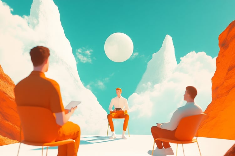 Perfect for themes around leadership, direction, or navigating complexity, this piece conveys a sense of purpose and momentum. Although created with the help of AI, the artwork maintains a distinctly human warmth through its textures and color play. It’s a lively visual metaphor for staying centered and moving forward, even when the world around you feels chaotic.